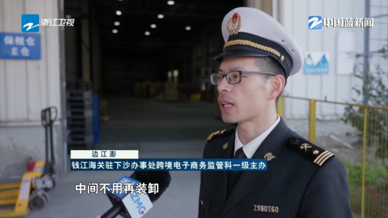 钱江海关驻下沙处事处跨境电子商务监管科一级从办 边江澎:“门到门”的这么一个运输的体例,能够一条中转,两头不消再拆卸。